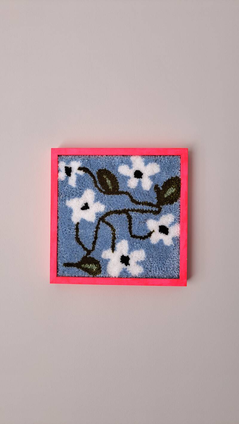 Dit tuftwerk heeft een afmeting van 25 x 25 cm.