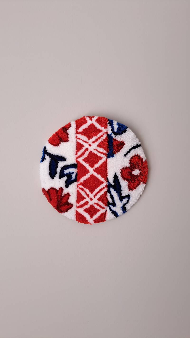 Dit tuftwerk heeft een diameter van ongeveer 30 cm.